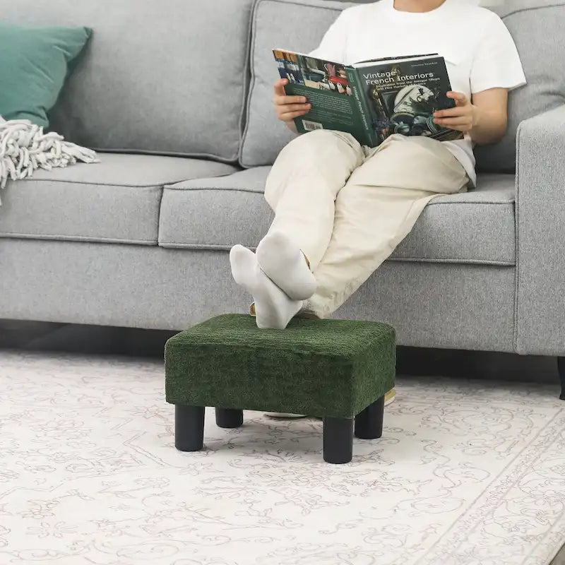 Adeco Small Rectangular Ottoman Modern PU Leather Footrest Stool Chair