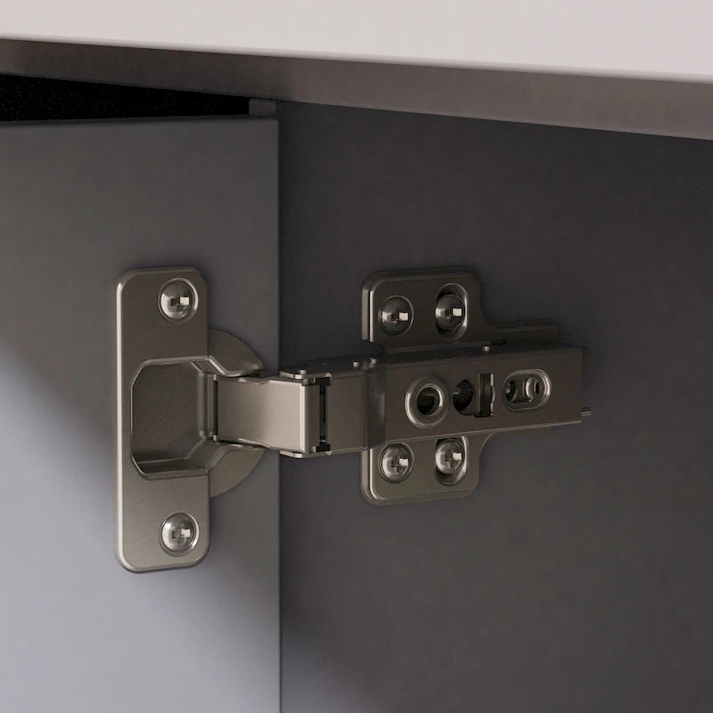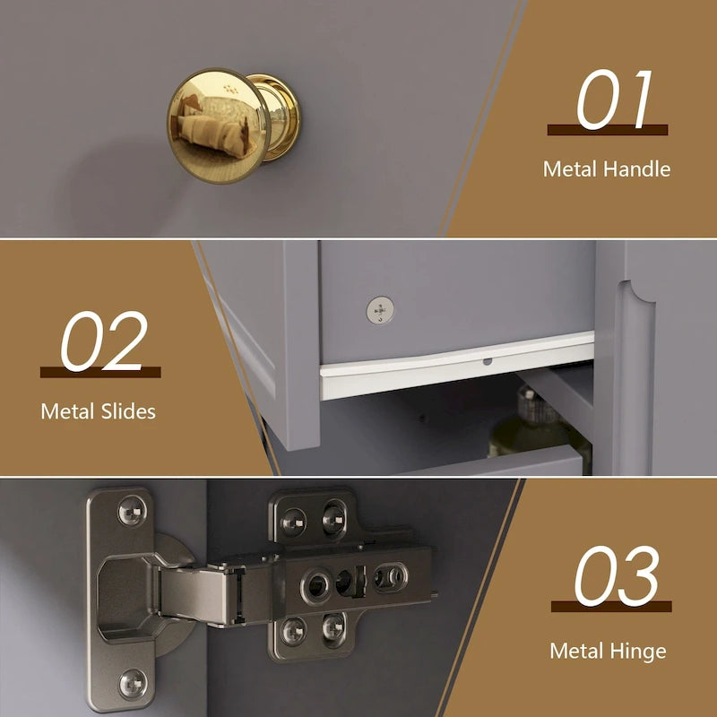 - Stylish modern design with flat panel doors, metal handles, and drawer front grooves