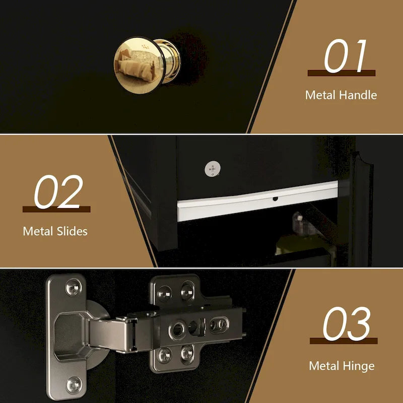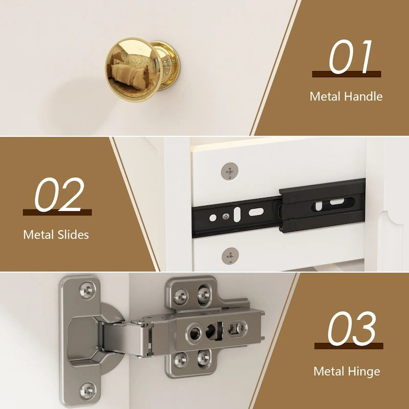 - Side cabinet with 4 storage spaces and 2 adjustable shelves