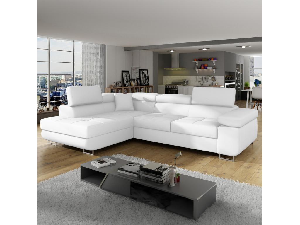 Homzora Left-Hand Corner Sofa Bed in White Faux Leather