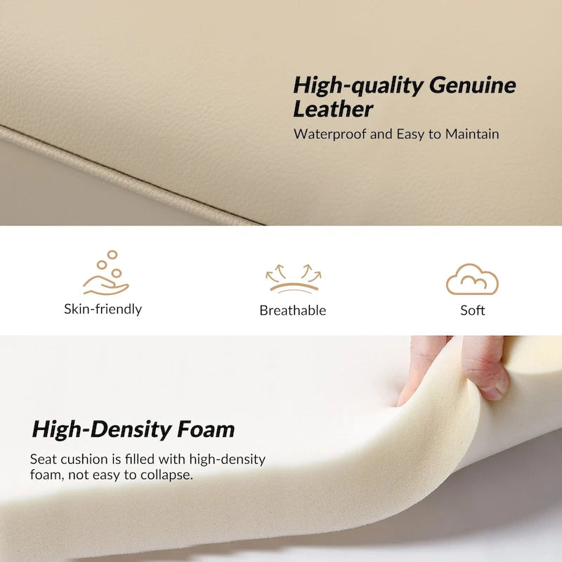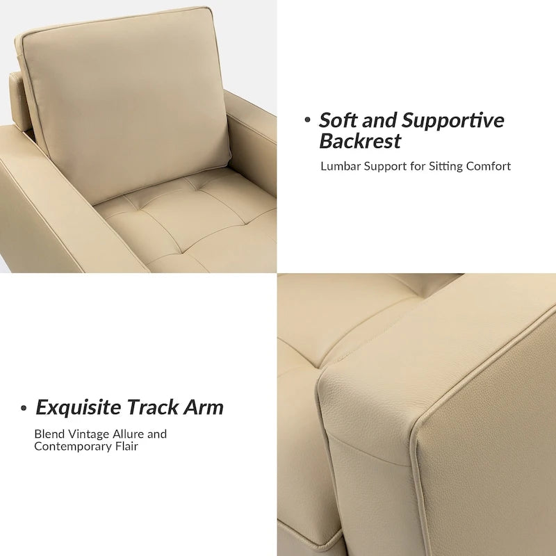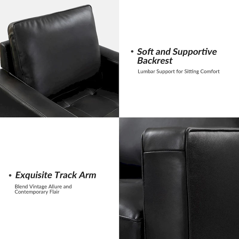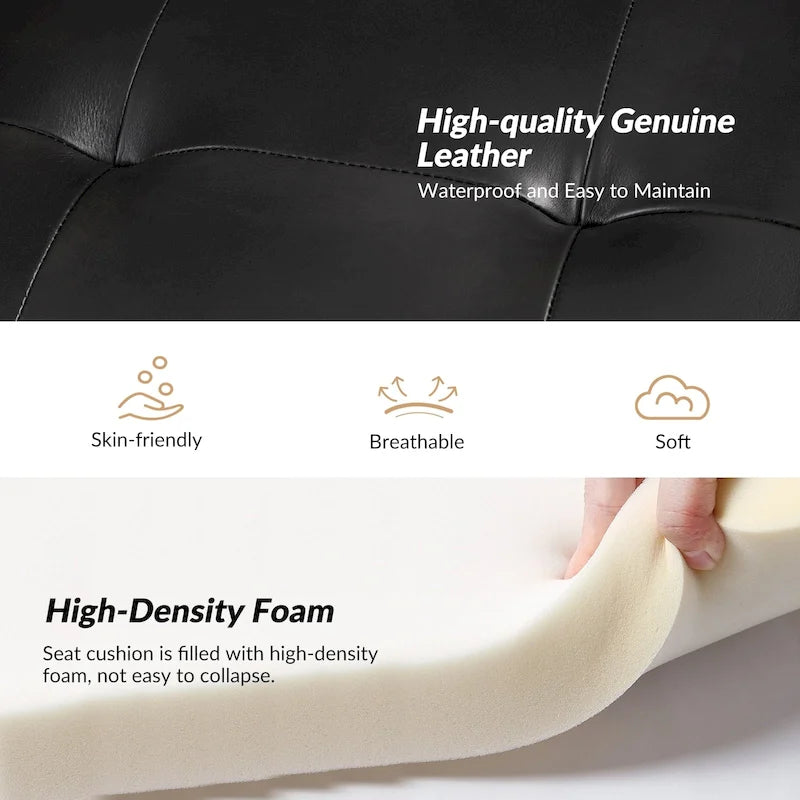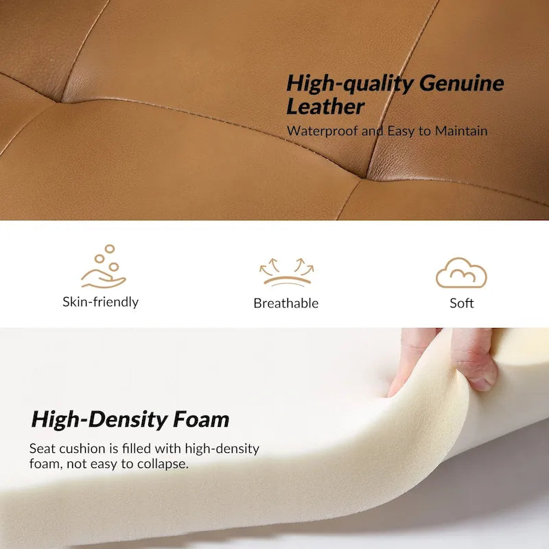 - Quality Material: This armchair is wrapped in genuine leather and vegan leather, most of the body contact part of the material is genuine leather, and the rest is vegan leather.