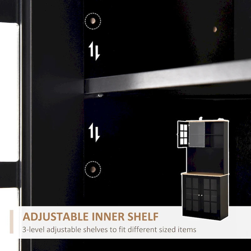 Keep your kitchen organized with this handy standalone pantry from Homcom. This sturdy cabinet features open and closed storage space as well as an open tabletop that's perfect for a microwave or other appliances. Choose from a black or white finish to best complement your decor.