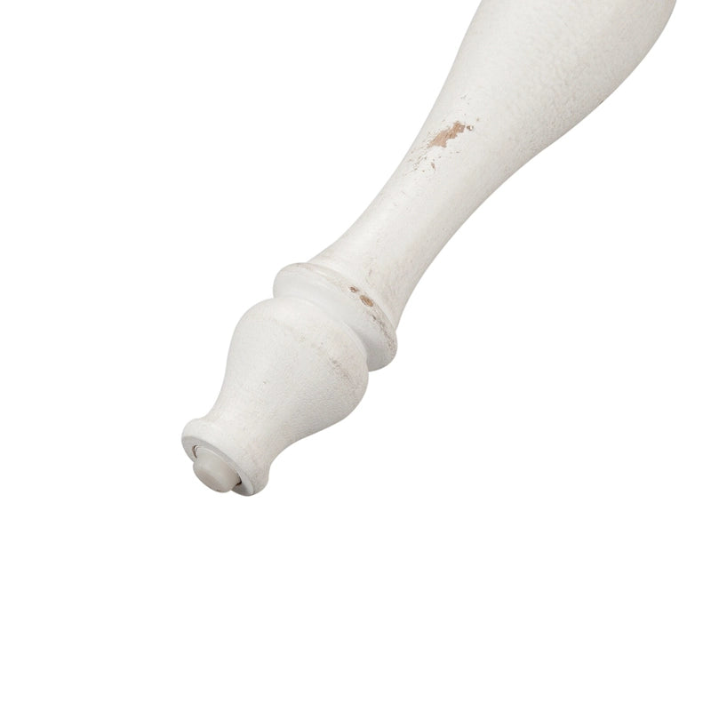 Sitting pretty with the Magnolia Manor six-piece leg table set, consisting of four ladder back side chairs, a dining bench, and a leg table. Crafted of poplar solids and white oak birch veneers, this kit features an antique white finish with a weathered brown top with whitewash. The table offers a fancy face top, softly rounded corners, one 12-inch removeable leaf to easily accommodate guests or a larger family and is anchored by heavily turned legs. The chairs showcase the perfect blend of European design with nylon chair glides to protect your flooring, and an arched back with a wooden saddle seat, anchored by beautifully turned legs. Warm antique finishes and artistic distressing along with grand scale create a piece to be passed to generations.