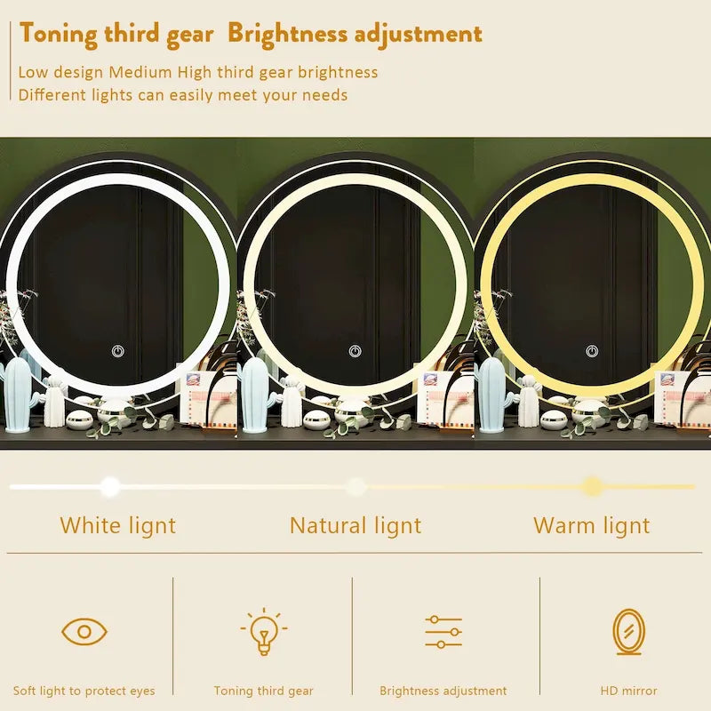 Makeup Vanity Dressing Table, Vanity Mirror with Lights and Table Set - 52H