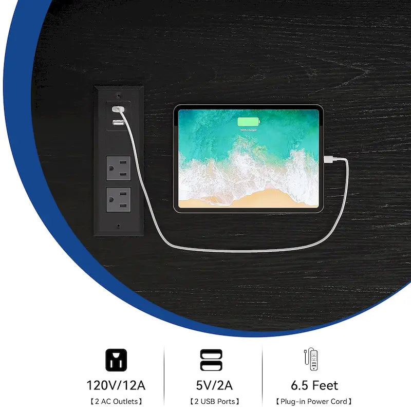 - Convenient Power Outlets 2 USB ports and 2 three-hole socket boards