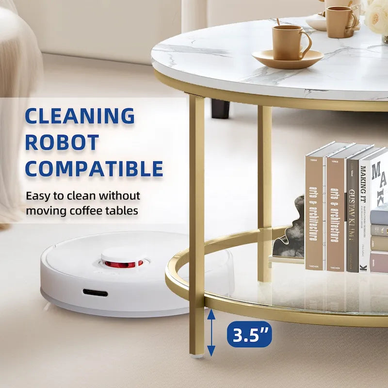 Moasis Industrial 2-Tier Round Coffee Table with Shelf