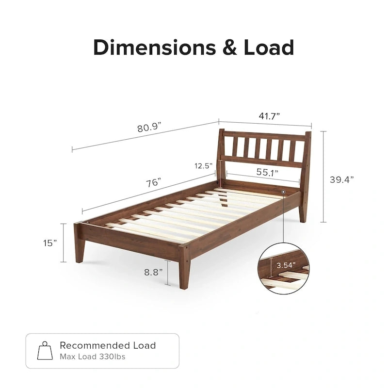 - Load: Supports weight of 330lbs (Twin) ; Supports 2 person, up to 660lbs in total (Full, Queen, King)