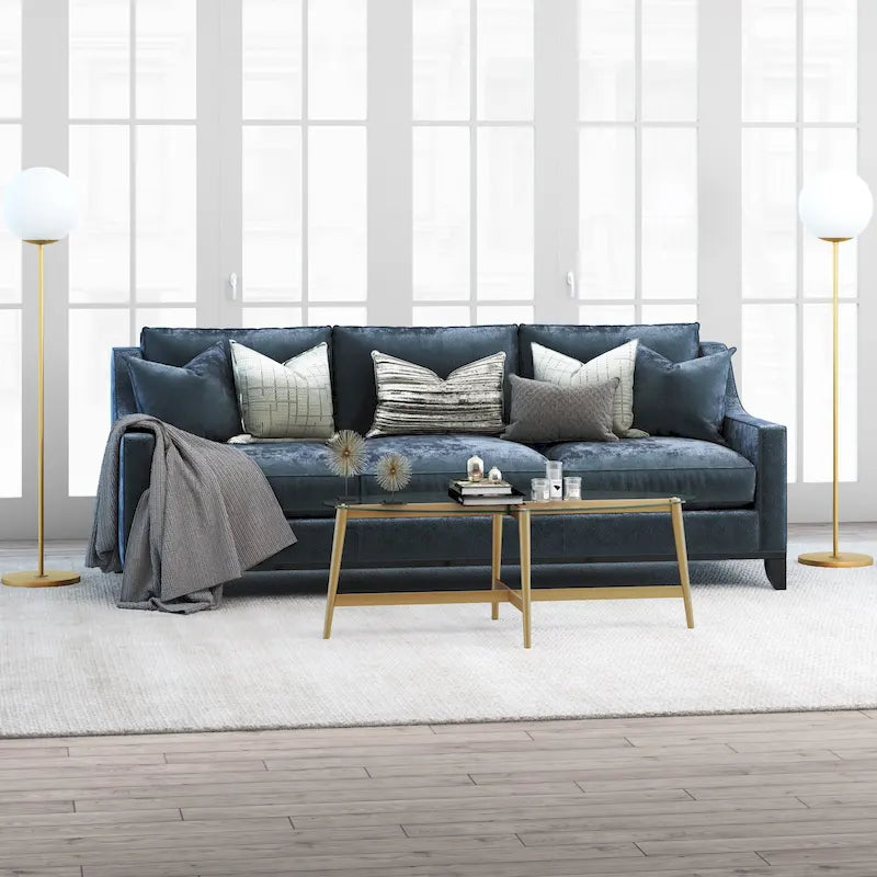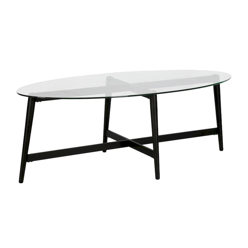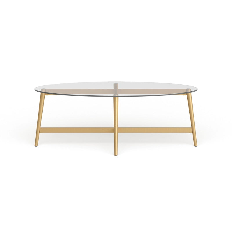 Introducing the sleek and sturdy Olson Oval Coffee Table, perfect for modern living rooms! This stylish centerpiece boasts a steel frame with tapered legs that support an oval-shaped tempered glass table top. Choose from two glamorous finishes, brass or blackened bronze, to complement your contemporary decor.