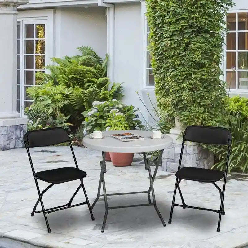 Plastic folding chairs are ideal for gathering, parties, home, offices, churches, schools, picnic. They won't get mouldy for heavy-duty plastic material and metal material with powder coating. Chairs could allow 350 lbs capacity with upgrade on tube and metal thickness. Plastic chairs are lightweight, so we could move them effortless.