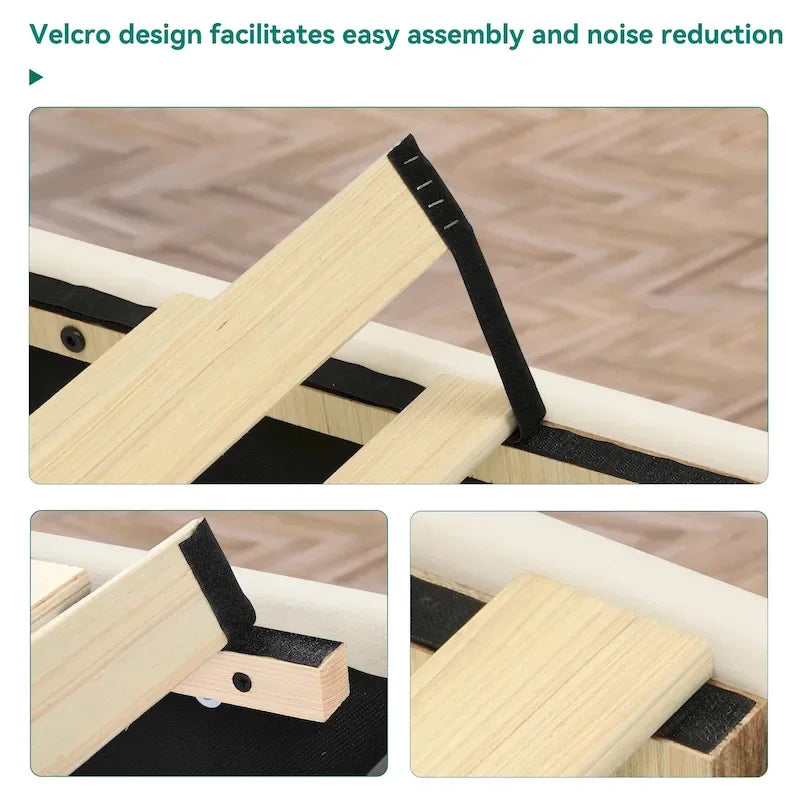 Queen Adjustable Upholstered Headboard Platform Bed Wingback Bed Frame