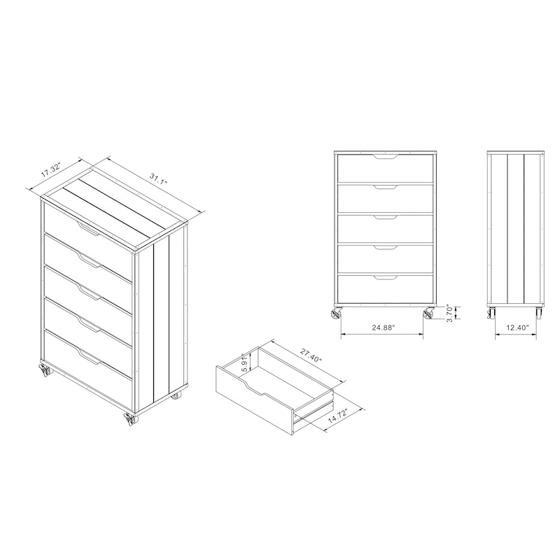 - CAPACITY: Five drawers on smooth metal glides