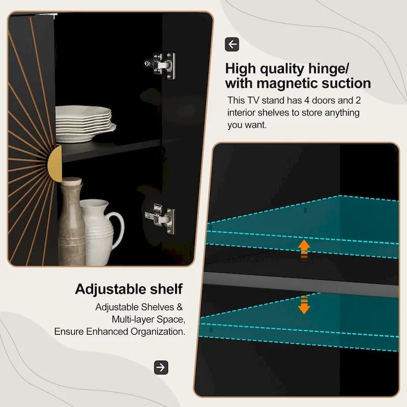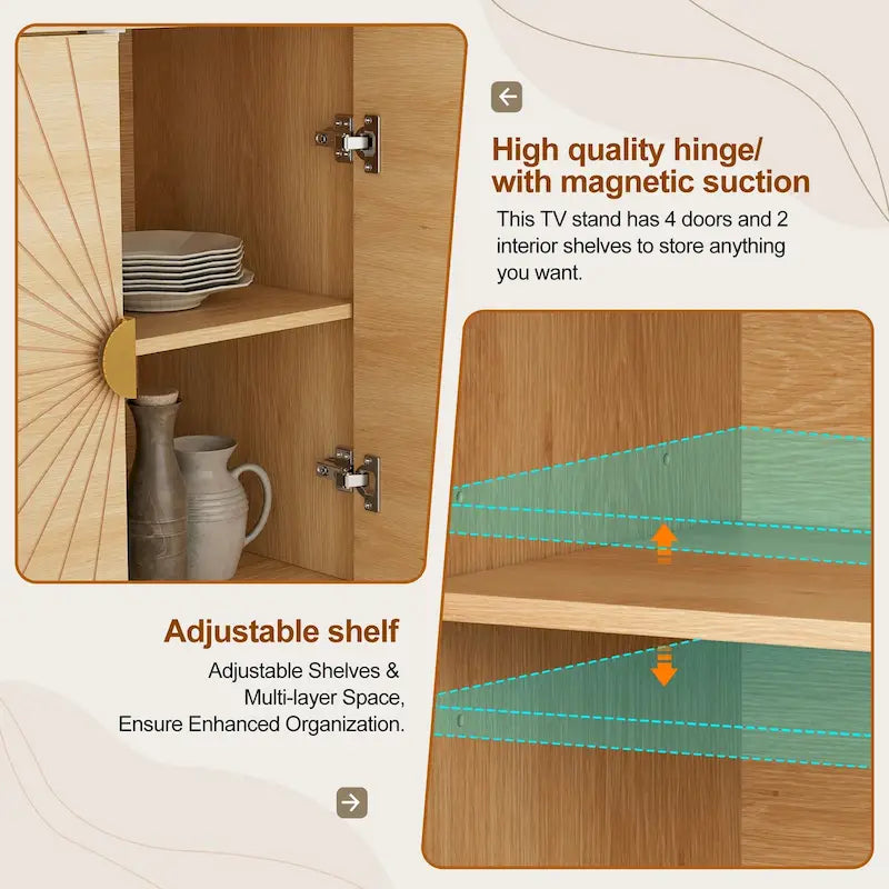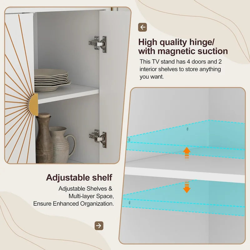 Herringbone DesignThe storage cabinet is elegant and modern with beautiful line design on the doors. The sideboard also adds uniqueness to any decorated style rooms.