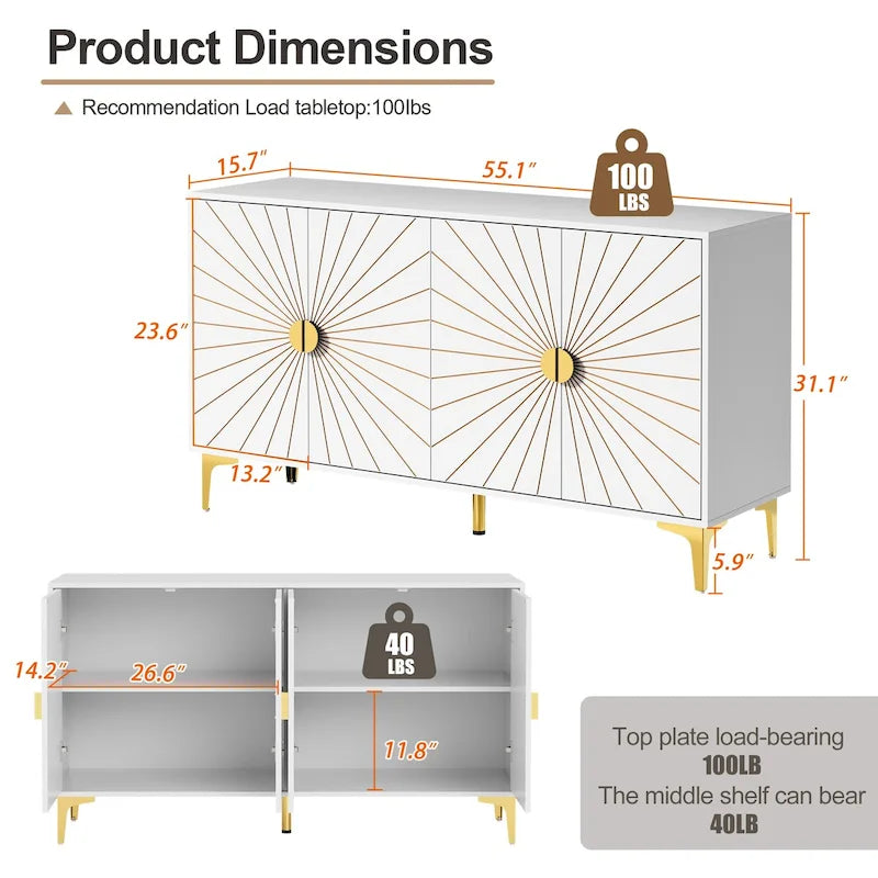 Multipurpose UsageThis sideboard buffet cabinet could easily fit in various living spaces: living rooms, bedrooms, hallways, entryways, closets and nurseries, etc.