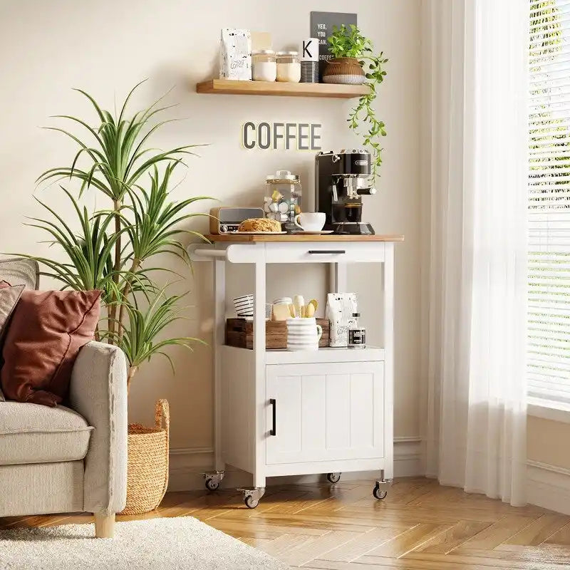 - Multifunctional Kitchen Island Cart: Made of high quality MDF and rubber wood, this small kitchen island cart is solidly constructed, safe and stable, ideal for adding extra space to your kitchen. You can use this kitchen island cart as a home coffee bar or microwave rack as needed.