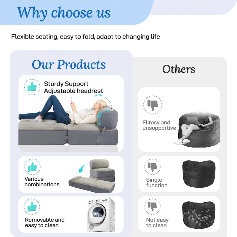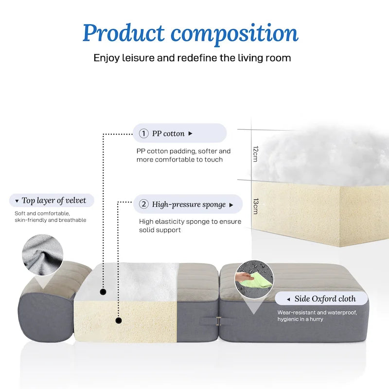 - Premium Materials and Easy Maintenance: The outer cover of the sofa bed is crafted from a blend of short plush and Oxford cloth. The areas in contact with the body are made of incredibly soft velvet, ensuring a comfortable experience over the long term. The zippered cover is easily removable and washable, simplifying maintenance and upkeep. Its overall neutral color scheme complements most home styles, adding an elegant touch to any room.